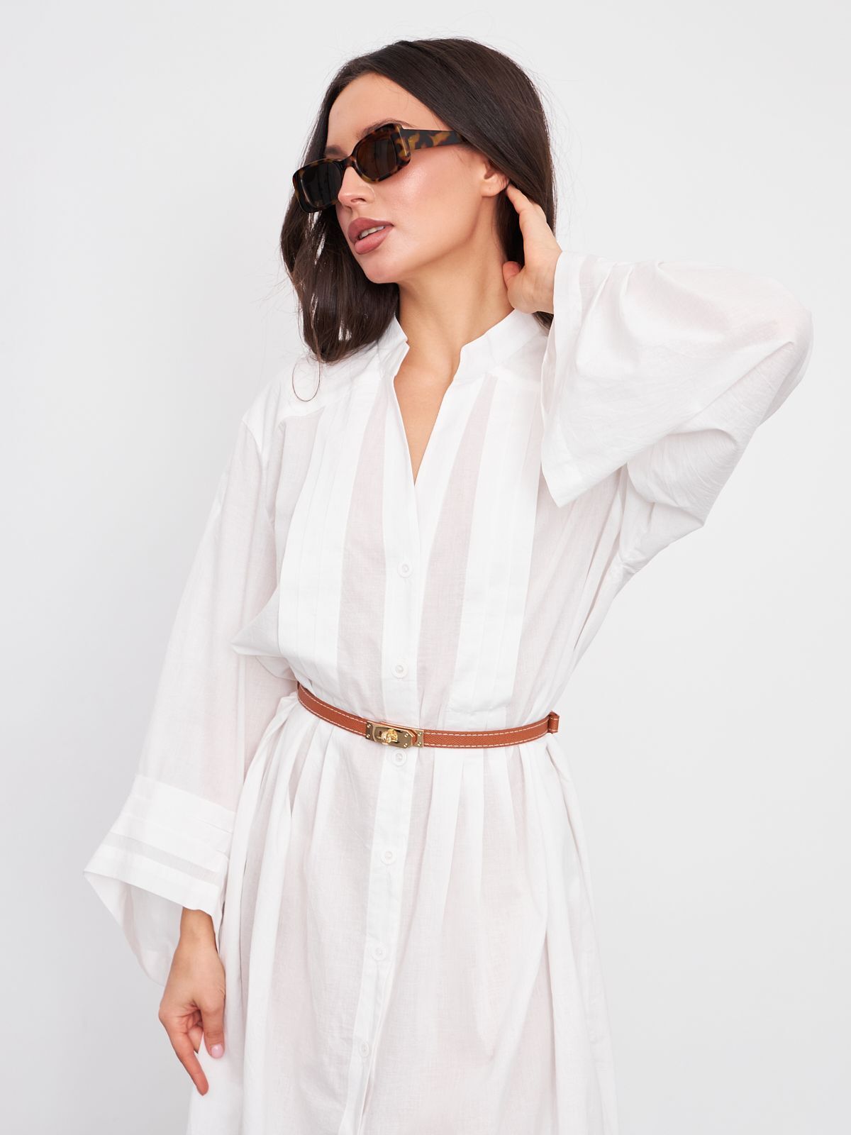 Удлиненную белую рубашку можно носить как с поясом, так и без него, в зависимости от предпочтений и особенностей фигуры. Для создания более строгого офисного образа можно выбрать классический вариант с брюками прямого кроя, а для повседневного стиля - модель с широкими брюками или джинсами. Важно также подобрать подходящую обувь и аксессуары, чтобы завершить образ.