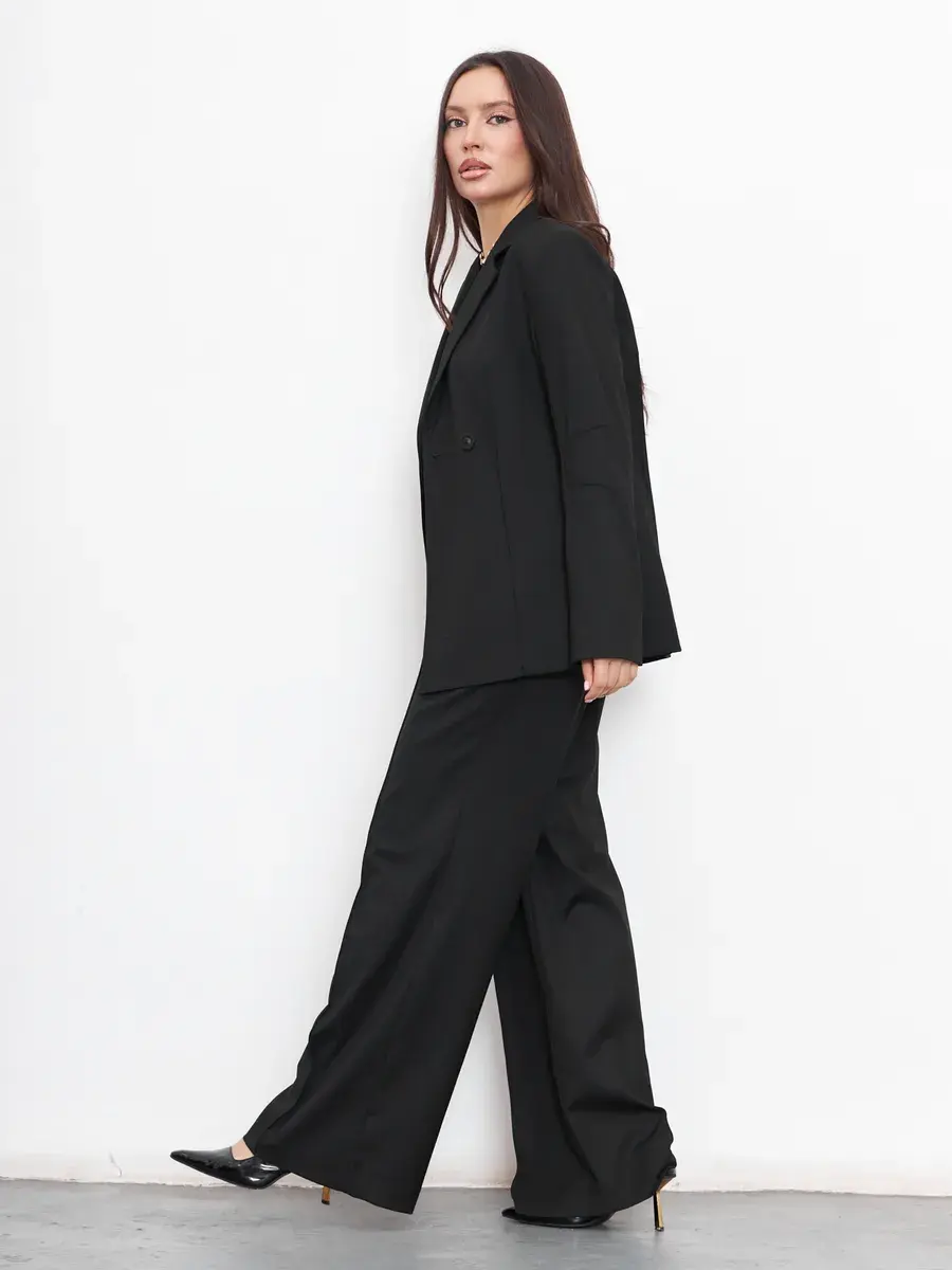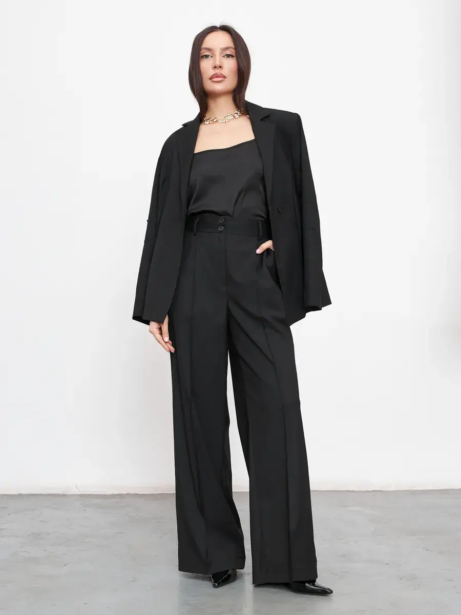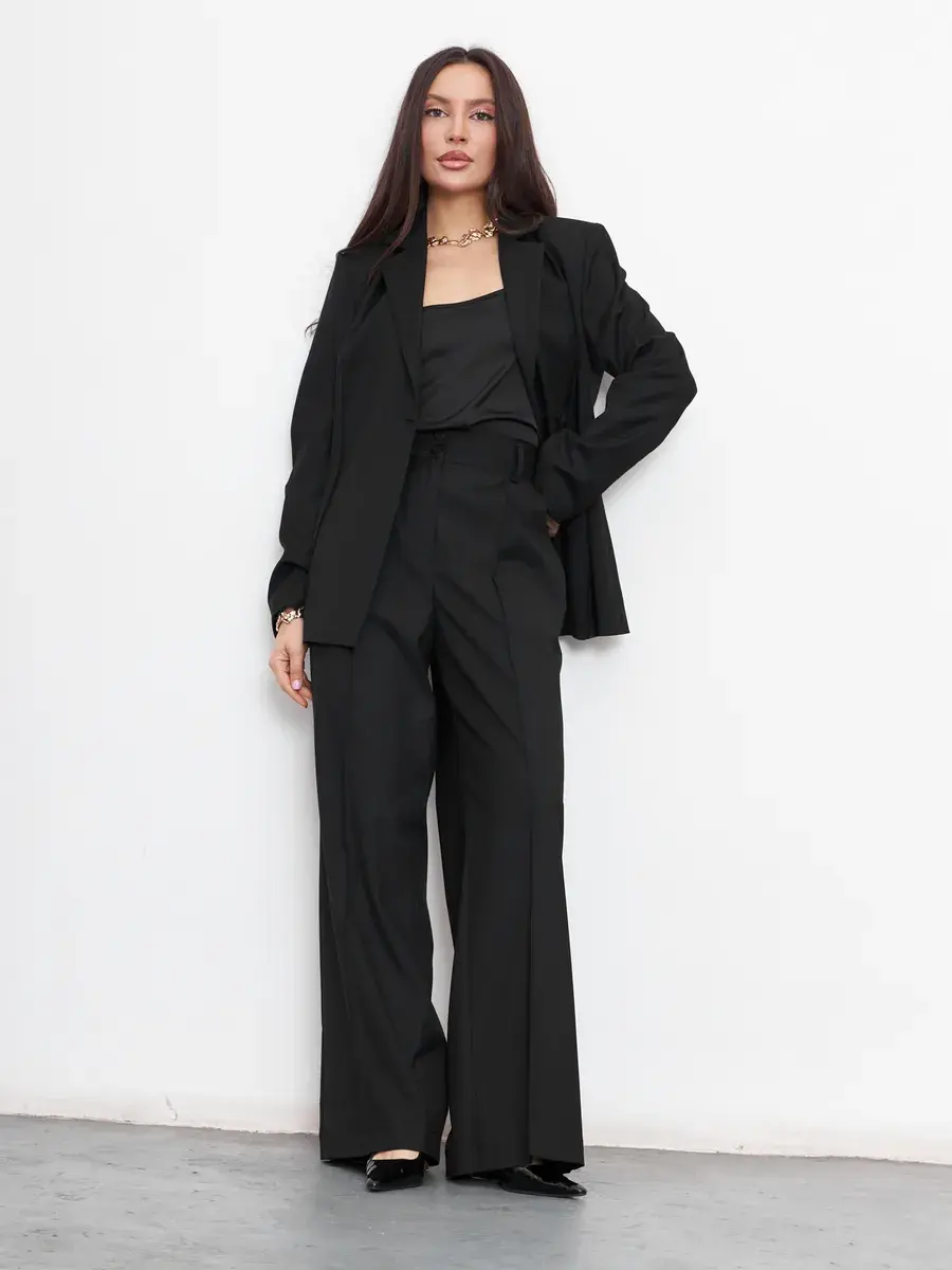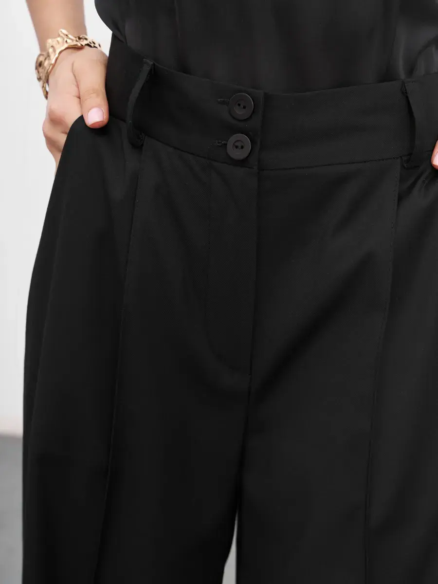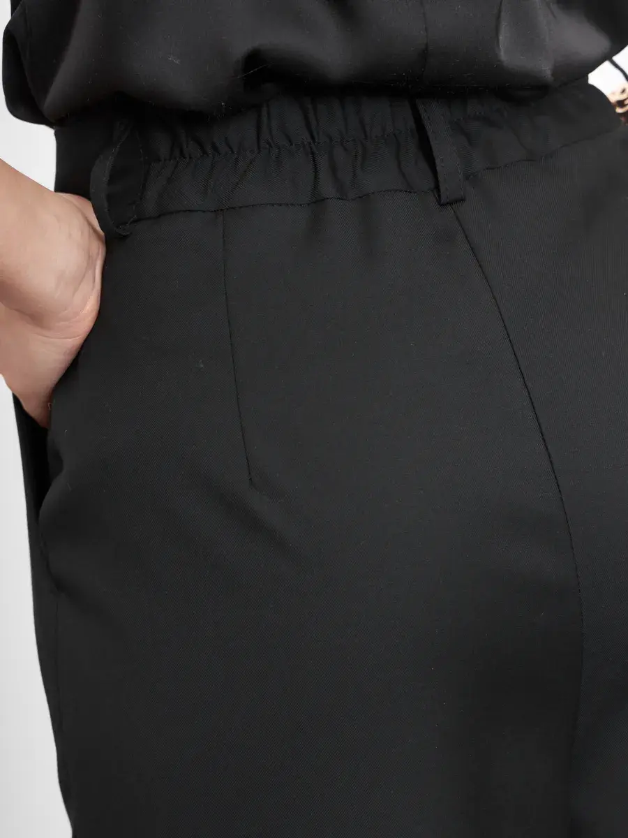 Эти классические костюмные брюки на резинке доступны в больших размерах для полных невысоких девушек, женщин и подростков, плюссайз, оверсайз, plus size что делает их универсальным выбором для всех. Модные и стильные, популярная классика old money, эти брюки прекрасно подойдут как для работы в офисе, так и для прогулок по городу или даже на свадьбу. Их черный цвет и струящиеся линии создают элегантный образ, который будет актуален в любой ситуации. Для создания готового делового образа добавьте приталенный пиджак в тон из нашей коллекции.