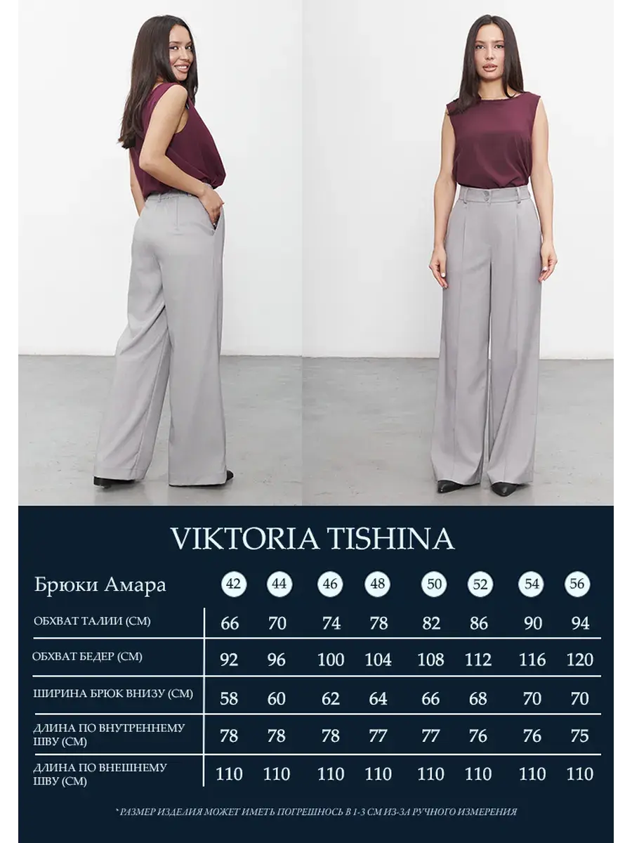 Классические женские брюки палаццо от Модного дома Виктории Тишиной - идеальный выбор для женщин, стремящихся к комфорту и стилю. Эти брюки изготовлены из высококачественного материала, который обеспечивает отличное сочетание удобства и долговечности. Благодаря свободному крою они идеально подойдут для различных типов фигур, а завышенная посадка подчеркнет изящество и грацию. При выборе размера, ориентируйтесь на размерную таблицу в фотоленте .Стильные широкие штаны на резинке - универсальная базовая модель на каждый день. Брюки трубы с высокой линией талии будут прекрасным дополнением вашего гардероба, как в повседневном, так и в деловом стиле. Однотонный рисунок позволяет легко сочетать их с различными вещами. Защипы по линии талии и карманы делают штаны максимально комфортными. Свободный сексуальный оверсайз разбавит повседневный и подчеркнет вечерний образ! Офисные свободные брюки подойдут как для работы, так и для праздника, в школу, в университет, станут прекрасным подарком женщинам : любимой девушке, маме, сестре. Модные нарядные брюки приятные к телу, а также износостойкие, ткань не скатывается и отлично выглядит, сохраняя первоначальную форму и цвет. В каталоге бренда Модный дом Виктории Тишиной вы всегда сможете найти брюки на любой вкус: классические, палаццо, карго, джоггеры, клеш, бананы, кюлоты. Наша женская трендовая одежда создается на собственном производстве в Санкт-Петербурге для женщин и девушек высокого и низкого роста, маленьких и больших размеров. Мы придумываем и отшиваем одежду на любой вкус: классическую, деловую, романтическую, а также в кэжуал и спортивном стиле. Создавайте с нами свой собственный уникальный образ на каждый день и любое событие! У нас есть акции и распродажи, вы можете купить наши товары со скидкой!