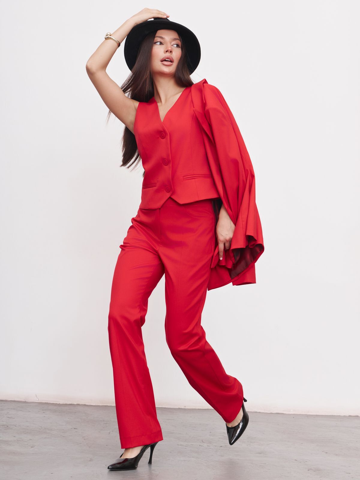 Брюки женские; классические; костюм тройка; офисный костюм; с высокой талией; / 44 / 44 / красный / красный / 175 см / Весна-лето 2024 / Вискоза / 80% вискоза, 20% полиэстер / прямой / Бережная стирка при 30 градусах, гладить при 110 градусах. / 400 / #брючный #костюм #весна / Молния / классические / 165-175 / 83-63-93
